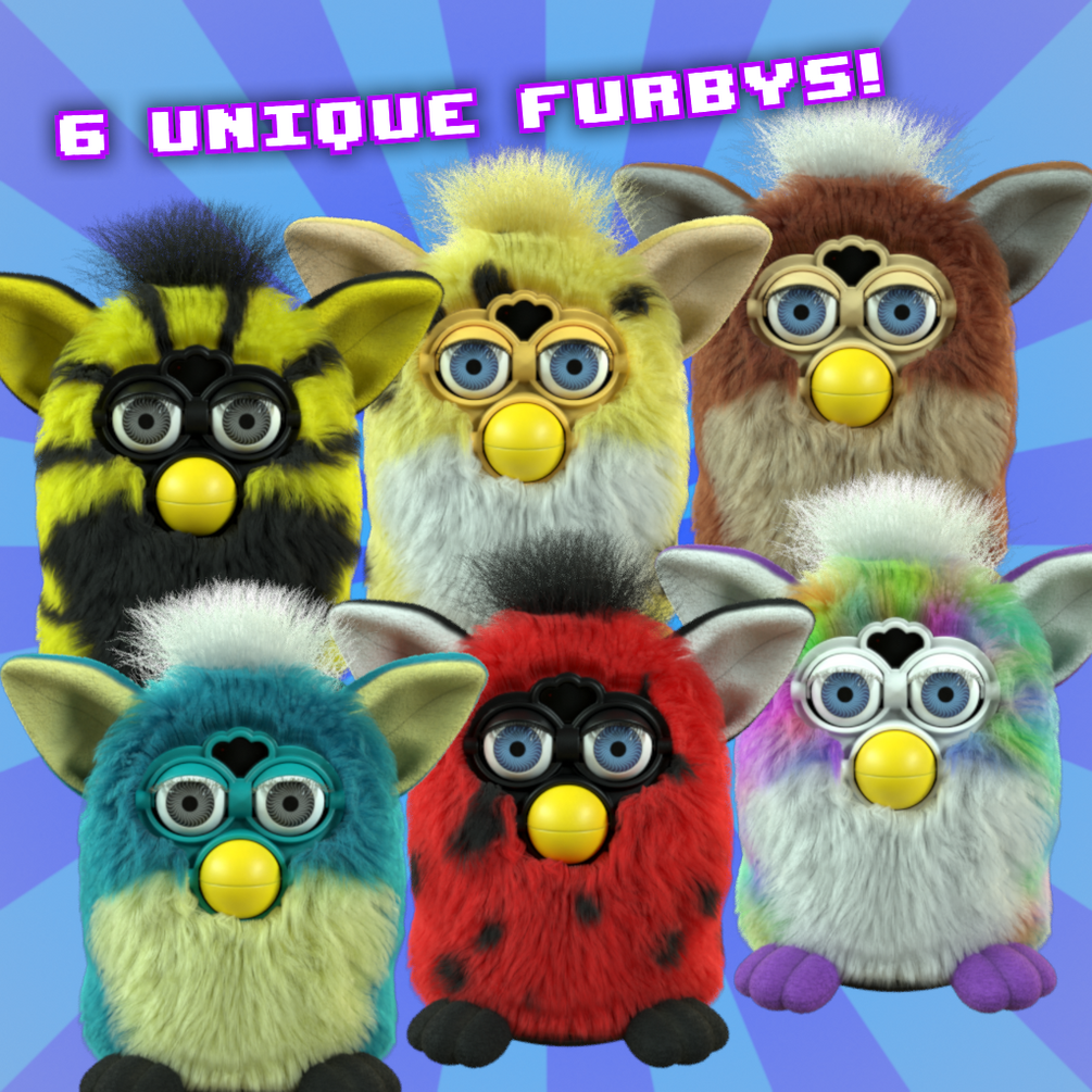 This 3D model pack includes all 6 colours from the Generation 4 lineup of Furbys from 1998!