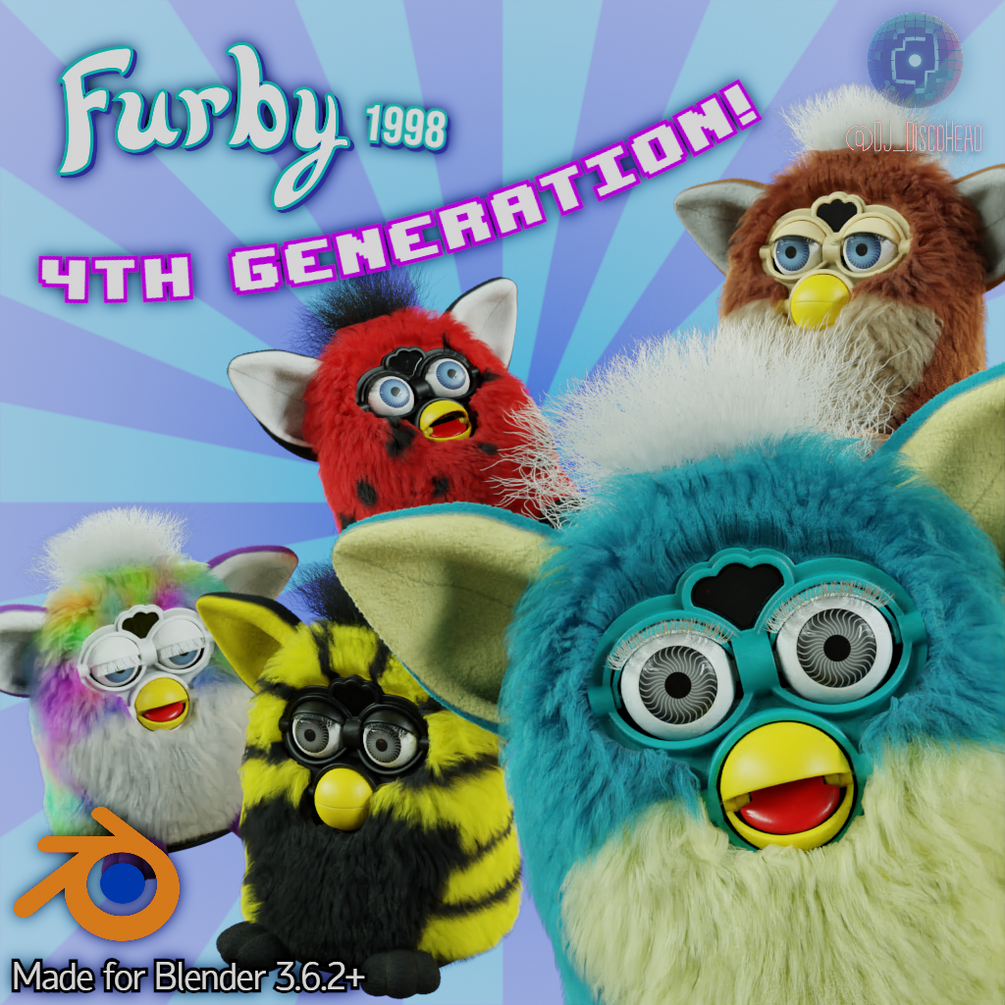 This 3D model pack includes all 6 colours from the Generation 4 lineup of Furbys from 1998!