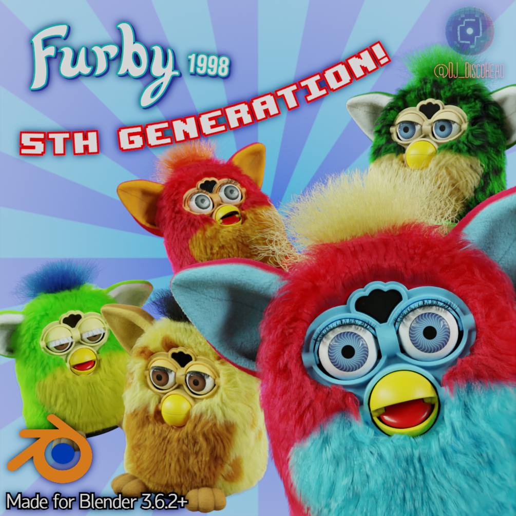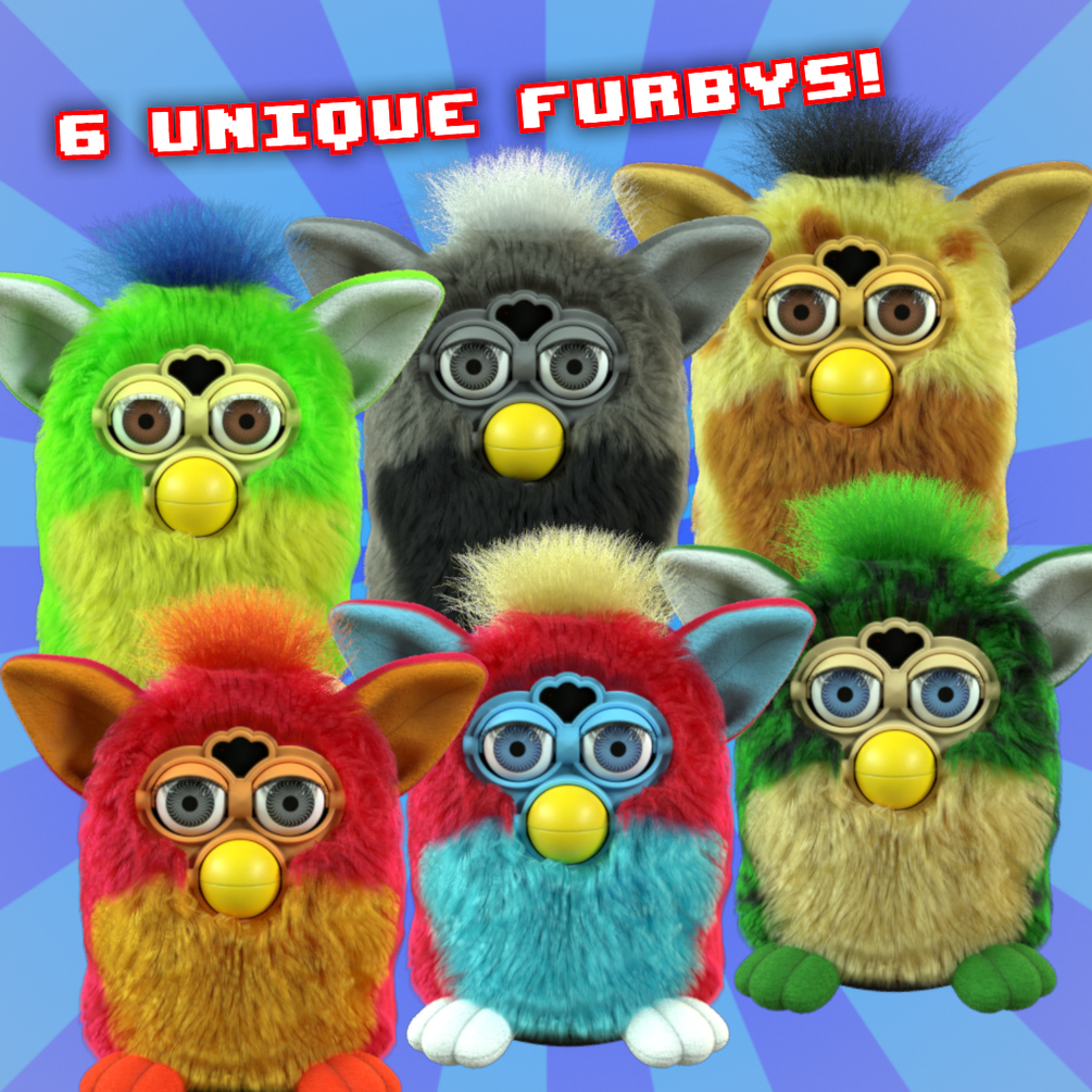 This 3D model pack includes all 6 colours from the Generation 5 lineup of Furbys from 1998!