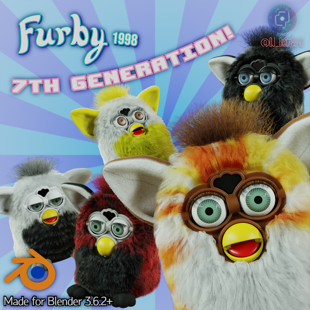 This 3D model pack includes all 6 colours from the Generation 7 lineup of Furbys from 1998!